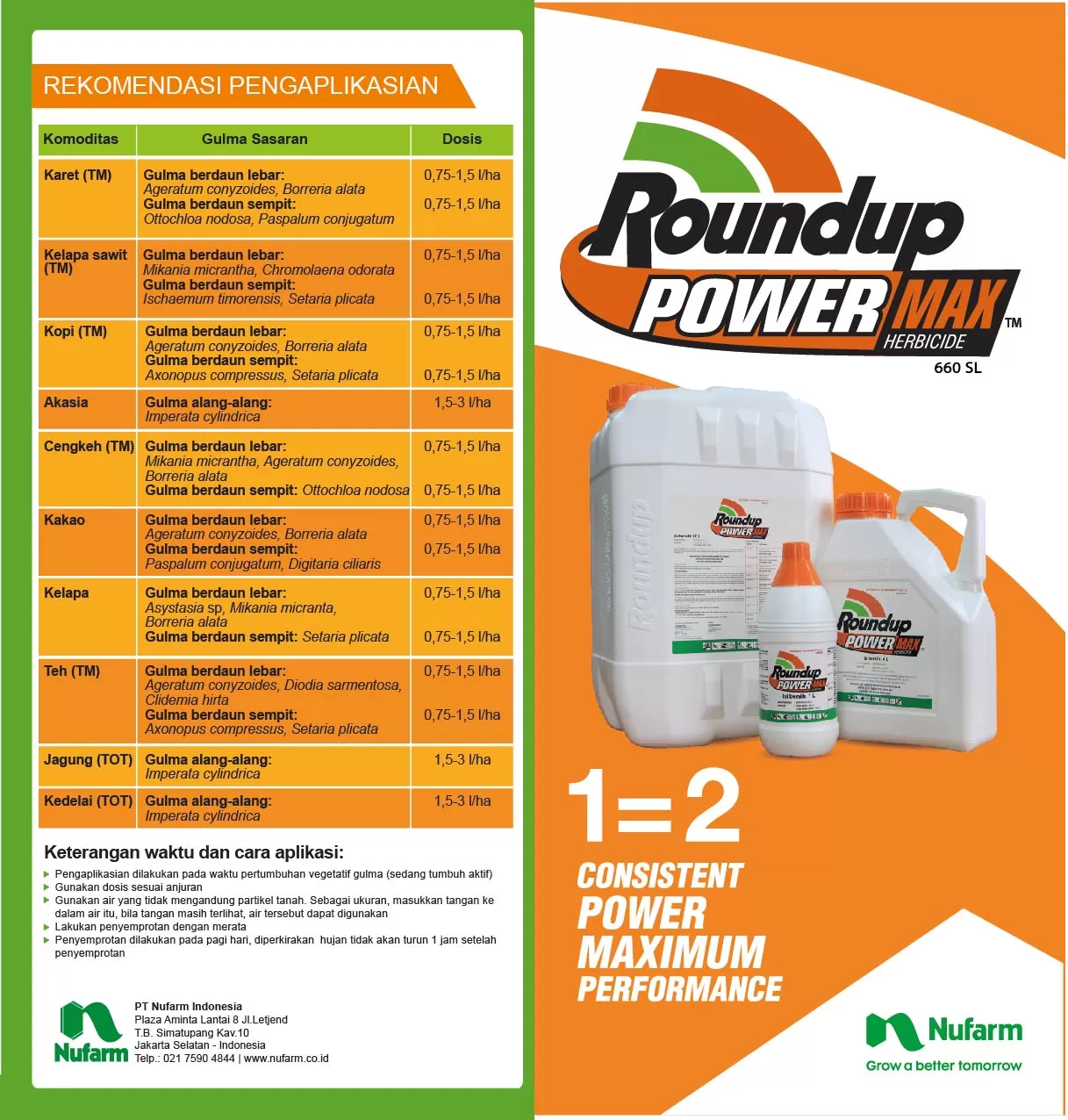 • TAHAN HUJAN : Tidak perlu semprot ulang jika hujan turun 30 Menit – 1 Jam setelah semprot.